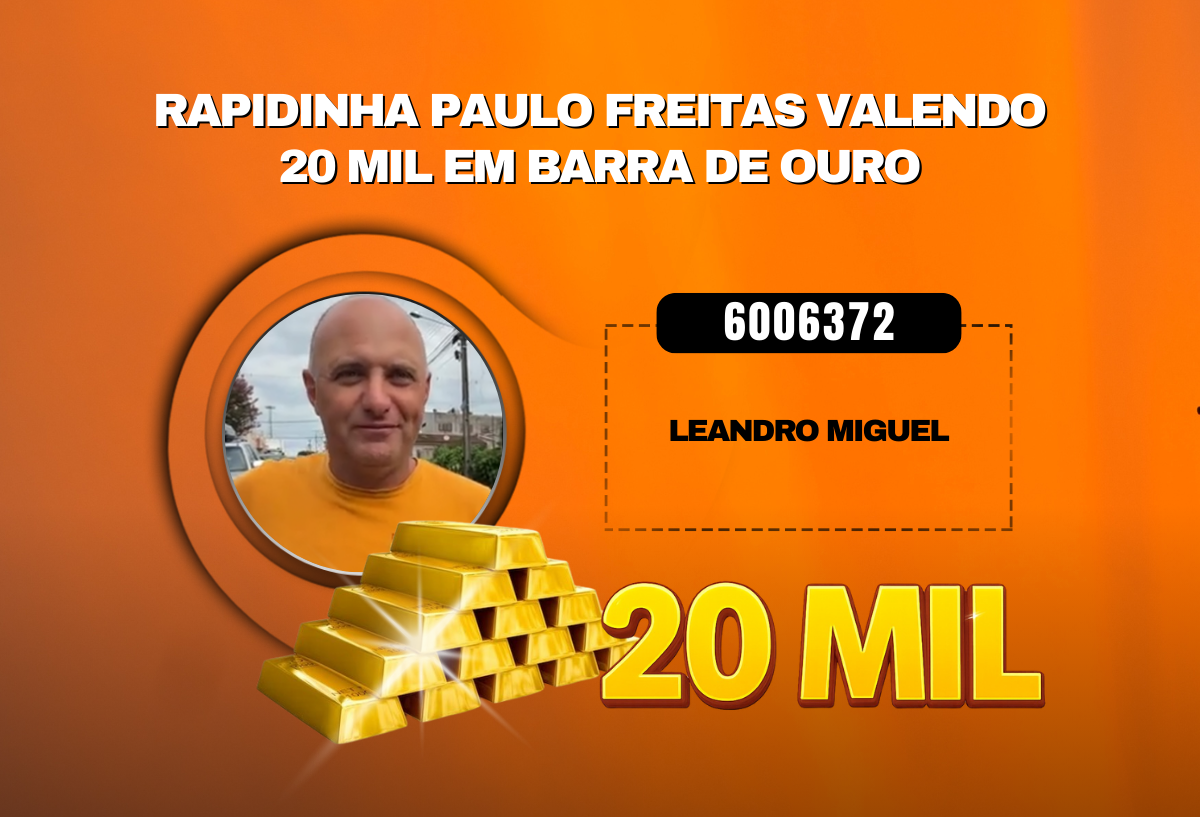 A primeira edição da Rapidinha do Paulo Freitas já entrou para a história com um grande destaque: o nome do seu primeiro ganhador. Leandro Miguel foi o participante contemplado com o prêmio de 20 mil reais em barra de ouro, marcando o início oficial dessa nova modalidade de ação.