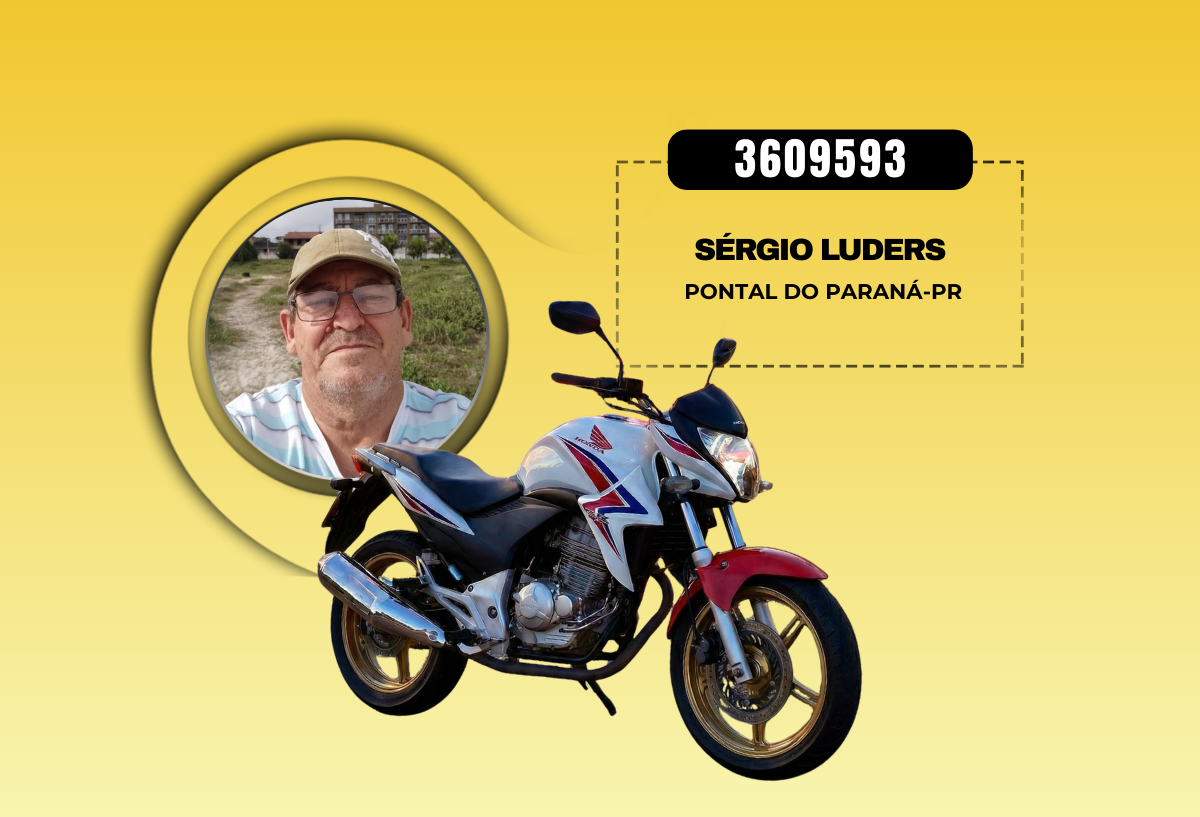 Sendo assim, o ganhador da moto Honda CB 300R com o número da sorte 3609593 foi nosso amigo Sérgio Luders, de Pontal do Paraná.