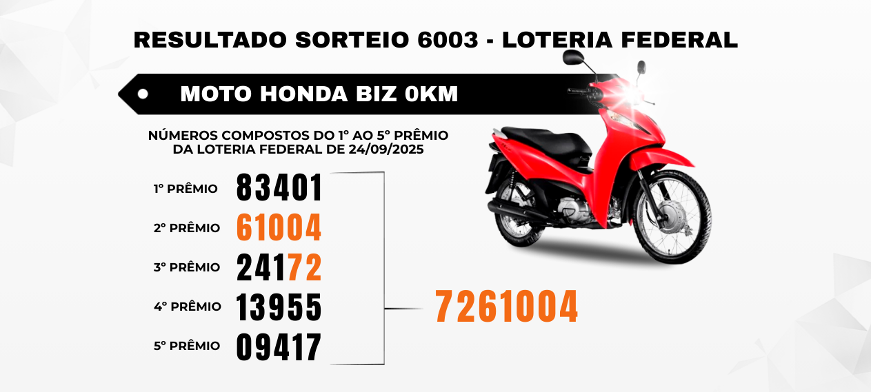 Os números foram extraídos diretamente do sorteio realizado pela Loteria Federal no concurso de número 6003 no dia 24 de Setembro de 2025 conforme descritos abaixo: