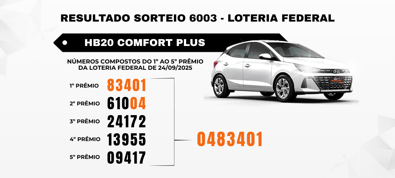 Os números foram extraídos diretamente do sorteio realizado pela Loteria Federal no concurso de número 6003 no dia 24 de Setembro de 2025 conforme descritos abaixo: