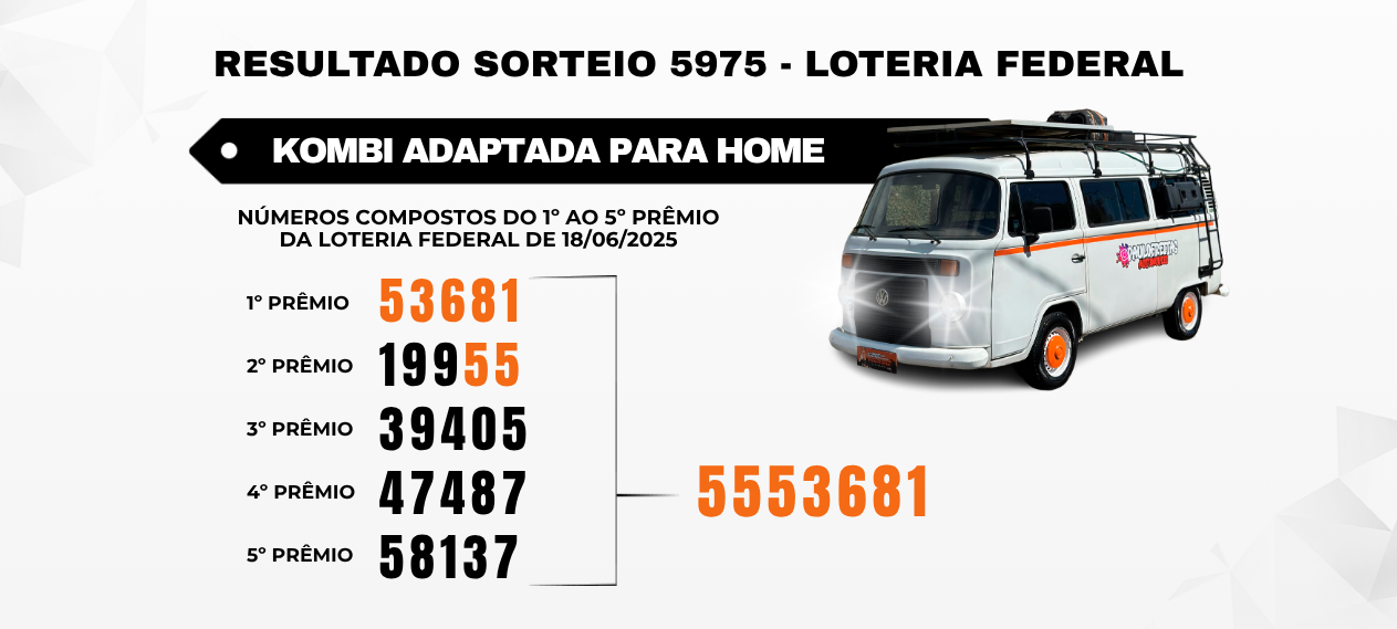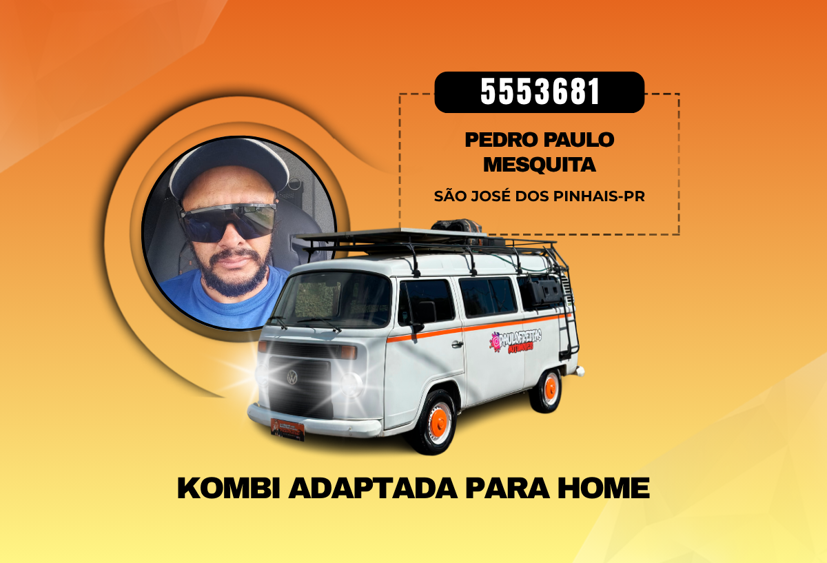 Sendo assim, o ganhador da Kombi adaptada para Home com o número da sorte 5553681, foi o nosso amigo Pedro Paulo Mesquita da cidade de São José dos Pinhais-PR.