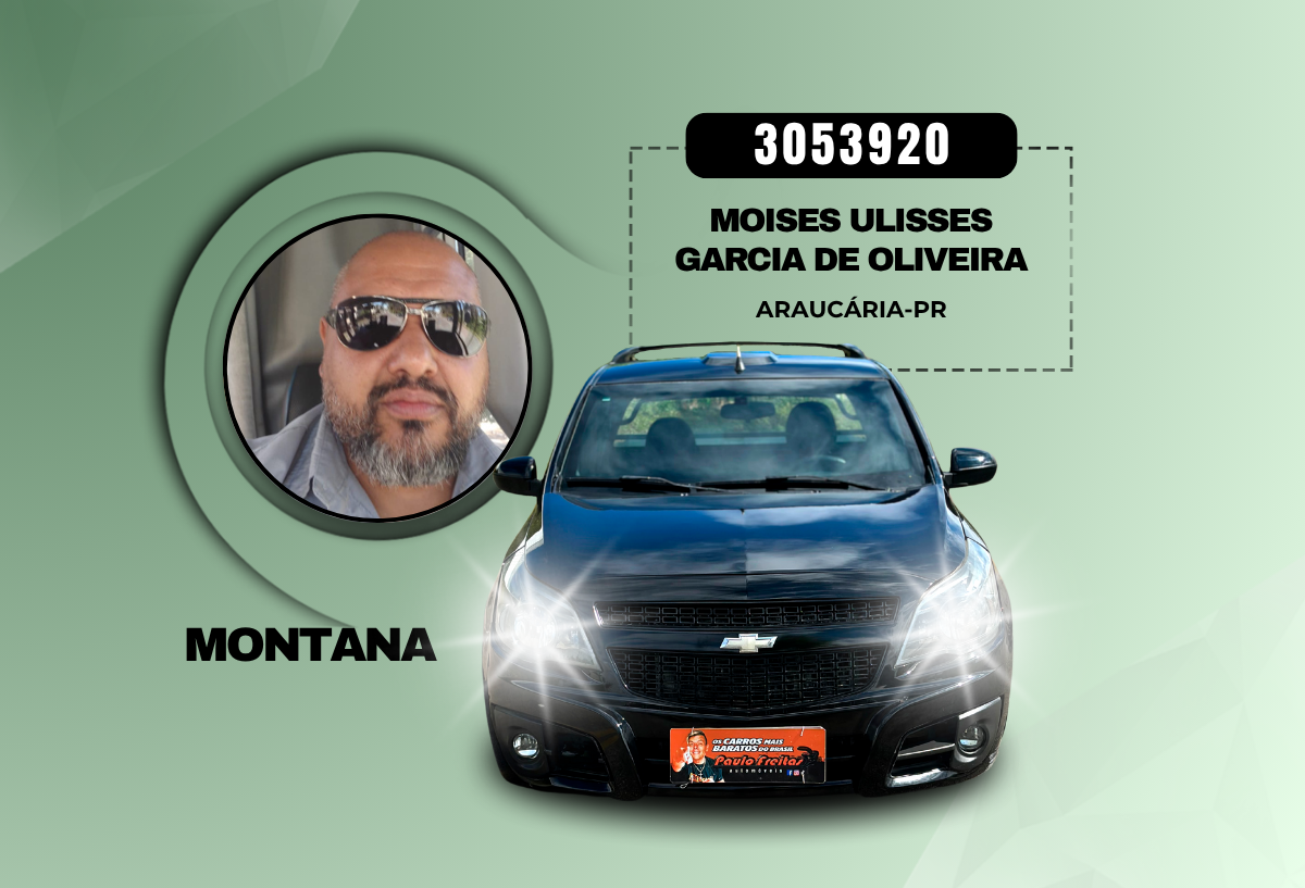 Sendo assim, o ganhador da Montana LS com o número da sorte 3053920, foi o nosso amigo Moisés Ulisses Garcia de Oliveira da cidade de Araucária-PR.